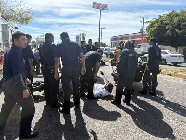 El accidente ocurrió justo frente a la estación de Bomberos de Los Mochis, lo que permitió que tanto el agente como el hombre mayor recibieran atención inmediata.